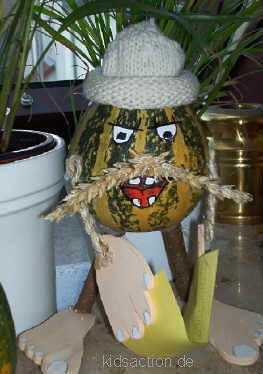- Malt singende Gesichter auf die Kürbisse (siehe auch Fotos unten)